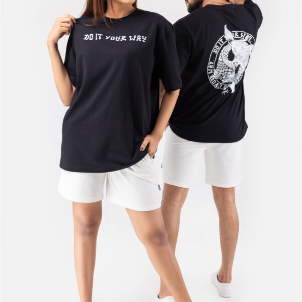 • PRINTED OVERSIZED JET BLACK T-SHIRT Rs. 2,900.00