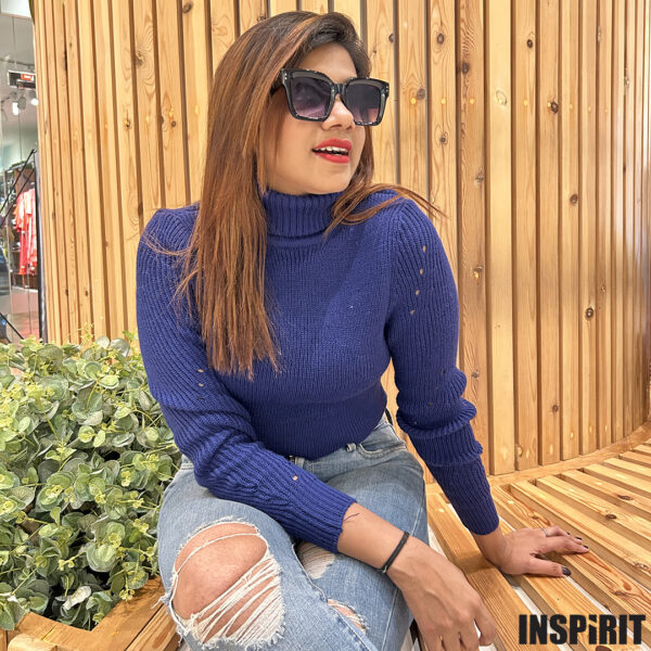 • SOLID TURTLE NECK LONG SLEEVE RIB KNIT CROP TOP Rs. 2,650.00